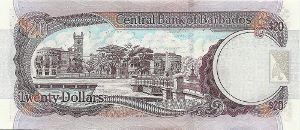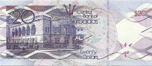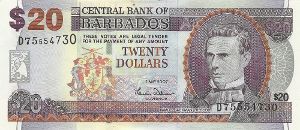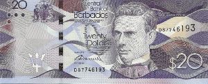 The old Barbados 20 Dollar note was first issued in 1973 and depicts Samuel Jackman Prescod and Trafalgar Square. A wave design type was issued in 2013. The note measures 150mm x 65mm.