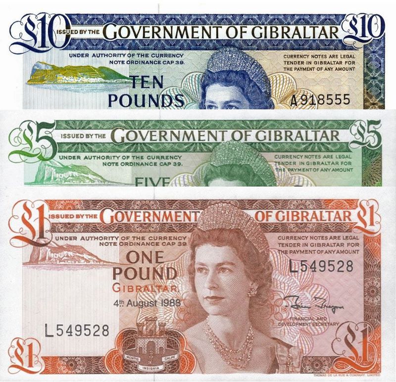 The current Gibraltar banknotes are issued by the Government of Gibraltar and date from 2010 onwards. They depict the Queen and value and have an historical scene on the reverse.